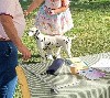 Manque prés molaire 2 inférieure droit, sujet avec un très bon caractère, tête très bien proportionnée, oeil de bonne couleur, excellente attache d'oreilles, pigmentation intense, excellente encolure, pointe supérieure de l'épaule un peu juste à l'arrière, à la statique des pieds ?